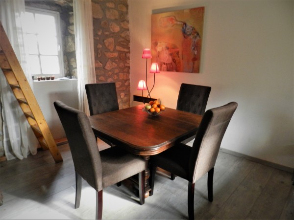 Le Romarin is een vrijstaand huis, dat zowel binnen als buiten veel ruimte en comfort biedt. Het huis ligt op een helling. De woonkamer met open keuken bevindt zich op de eerste verdieping, met aansluitend een betegeld terras. Beneden een mooie grote slaapkamer, een kleine (eenpersoons) slaapkamer en de badkamer. Vanuit de woonkamer een trap naar de slaapvide. Buiten veel terrassen, zodat er altijd wel een plek te vinden is met zon of schaduw.